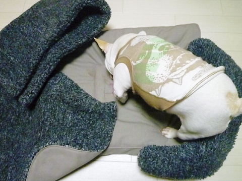 マットに乗せる、帆布とボア生地両面使える物・アゴ乗せ枕・かけ毛布完成~!!