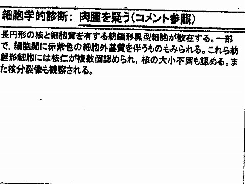 電話での先生の話では、悪い場合ははっきりと○○肉腫や、