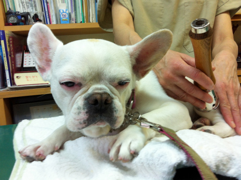 キューどうぶつ病院へ鍼灸へ