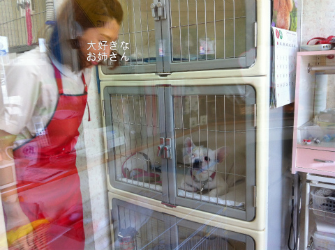 今まで、お迎えに行くとケージの中で、ビシっとキレイに座って外を見てたけど