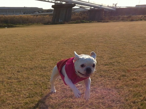一緒に走ってる所を撮ろうと、アタシが走ると梅も走る